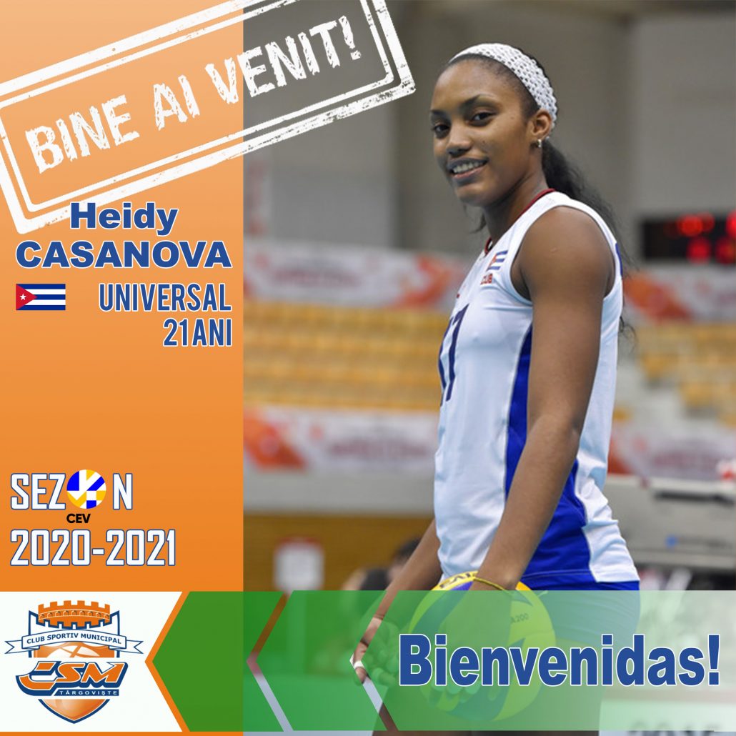 Clubul Sportiv Municipal Târgoviște a ajuns la un acord cu jucătoarea de volei Heidy Casanova. Noua jucătoare a clubului nostru are 21 de ani și este originară din Cuba, fiind considerată cea mai promițătoare voleibalistă din această țară.